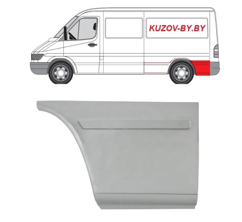 Арка задняя левая Volkswagen LT 1996-2006 часть после колеса, ближе к заднему бамперу, хвост, средняя база, высота 43см, оцинковка, Польша Польша (KD)