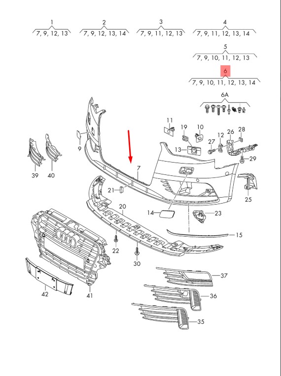 Бампер передний Audi A3 2012-2020 СЕДАН, с отверстиями под парктроники, с отверстиями под омыватели Тайвань (TW)