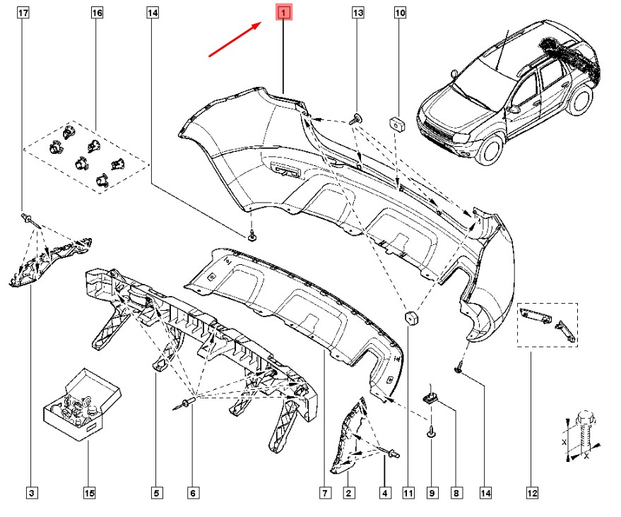 Бампер задний Renault Duster 2010-2021 Тайвань (TW)