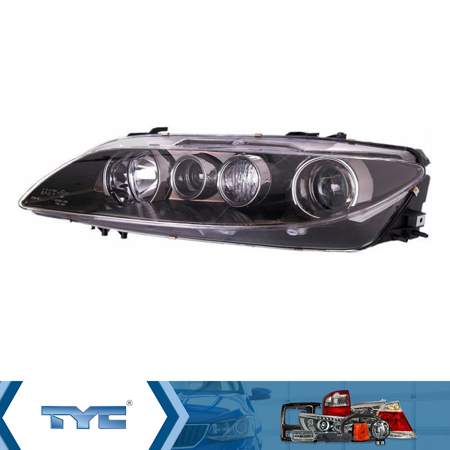 Фара правая Mazda 6 2002-2007 рестайлинг, электрическая регулировка с корректором в комплекте, без противотуманки, светло-черный отражатель Тайвань (TYC)