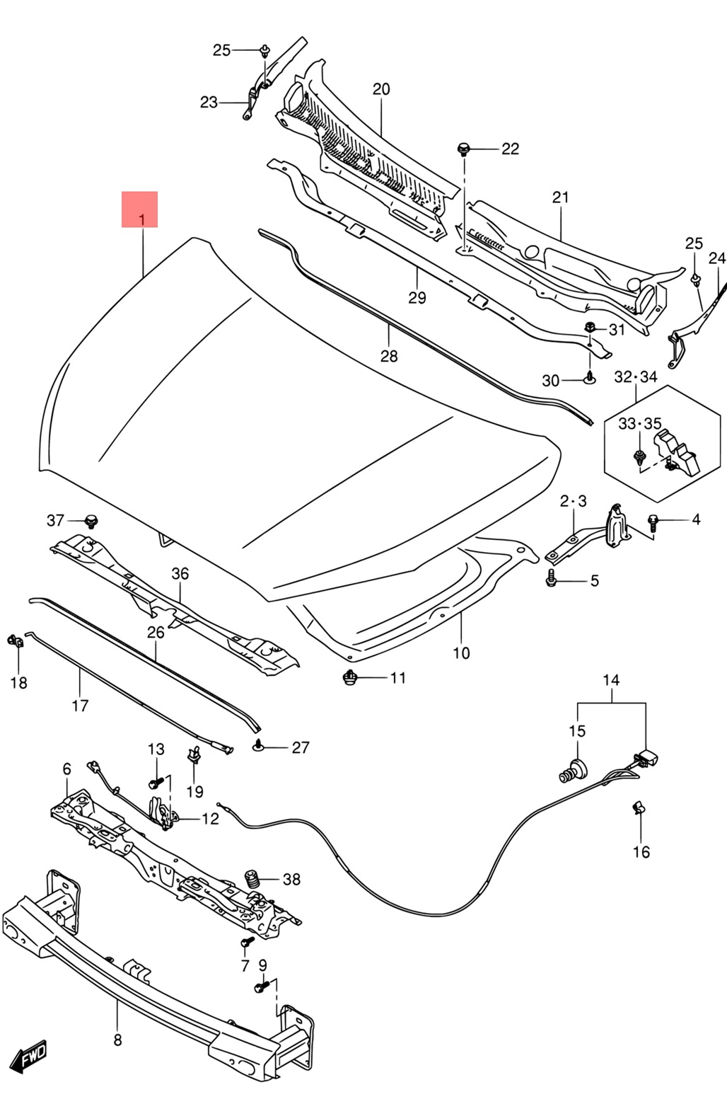 Капот Suzuki SX4 2013-2024 рестайлинг Тайвань (TW)