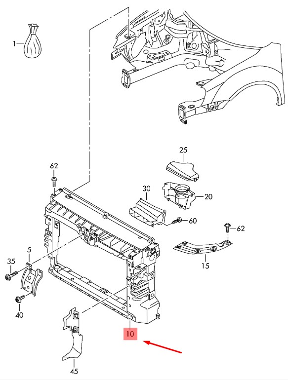 Панель крепления радиаторов (телевизор) Volkswagen Passat 2010-2015 панель передняя в сборе, Американская модель Тайвань (TW)