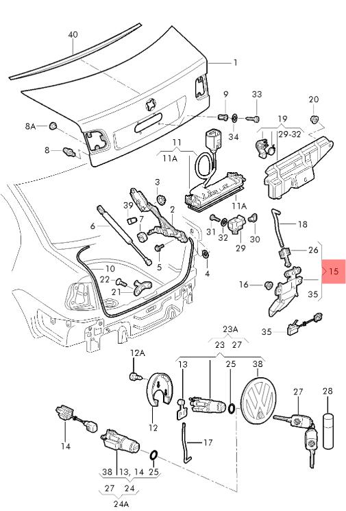 Артикул: K743393 Оригинальный номер: 1J5827505E Замок багажника
