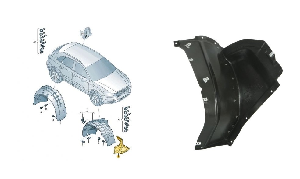 Артикул: K754848 Оригинальный номер: 8U0821171C Защита арок передняя правая (подкрылок) передняя часть, рестайлинг, хорошее качество, гарантия, помощь в установке на нашем СТО